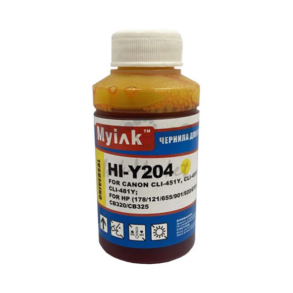 Чернила универсальные для CANON-HP CLI-451Y/455Y/471Y; HP (178,655/901/920) HI-Y204 (70мл,Yellow Dye) MyInk
