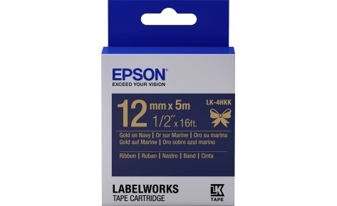 654002 Картридж EPSON с cатиновой лентой LK-4HKK (12мм,Тем.Син./Золото,5м)
