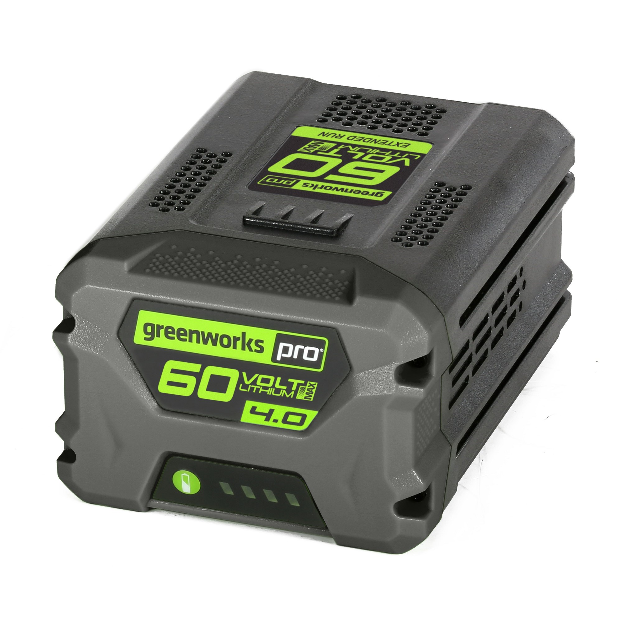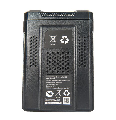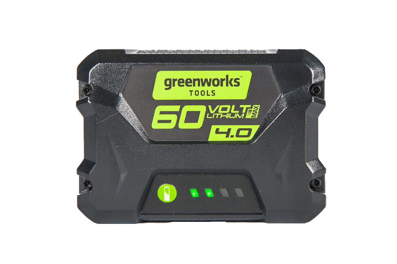 Новинка 2017 года — аккумулятор Greenworks 60 вольт (модель G60B4) — самый современный литий-ионный (Li-ion) аккумулятор, применяемый в линейки всех устройств Greenworks 60V.