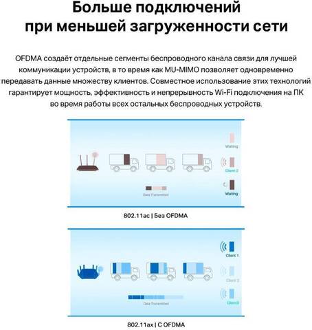 Wi-Fi 6 и непревзойдённая скорость— до 574 Мбит/с (2,4 ГГц) + до 2402 Мбит/с (5 ГГц)