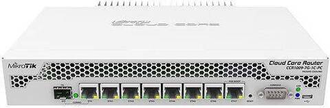 MikroTik Cloud Core Router 1009-7G-1C-PC with Tilera Tile-Gx9 CPU (9-cores, 1Ghz per core), 1GB RAM, 7xGbit LAN, 1x Combo port (1xGbit LAN or SFP), RouterOS L6, passive cooling desktop enclosure, rack
