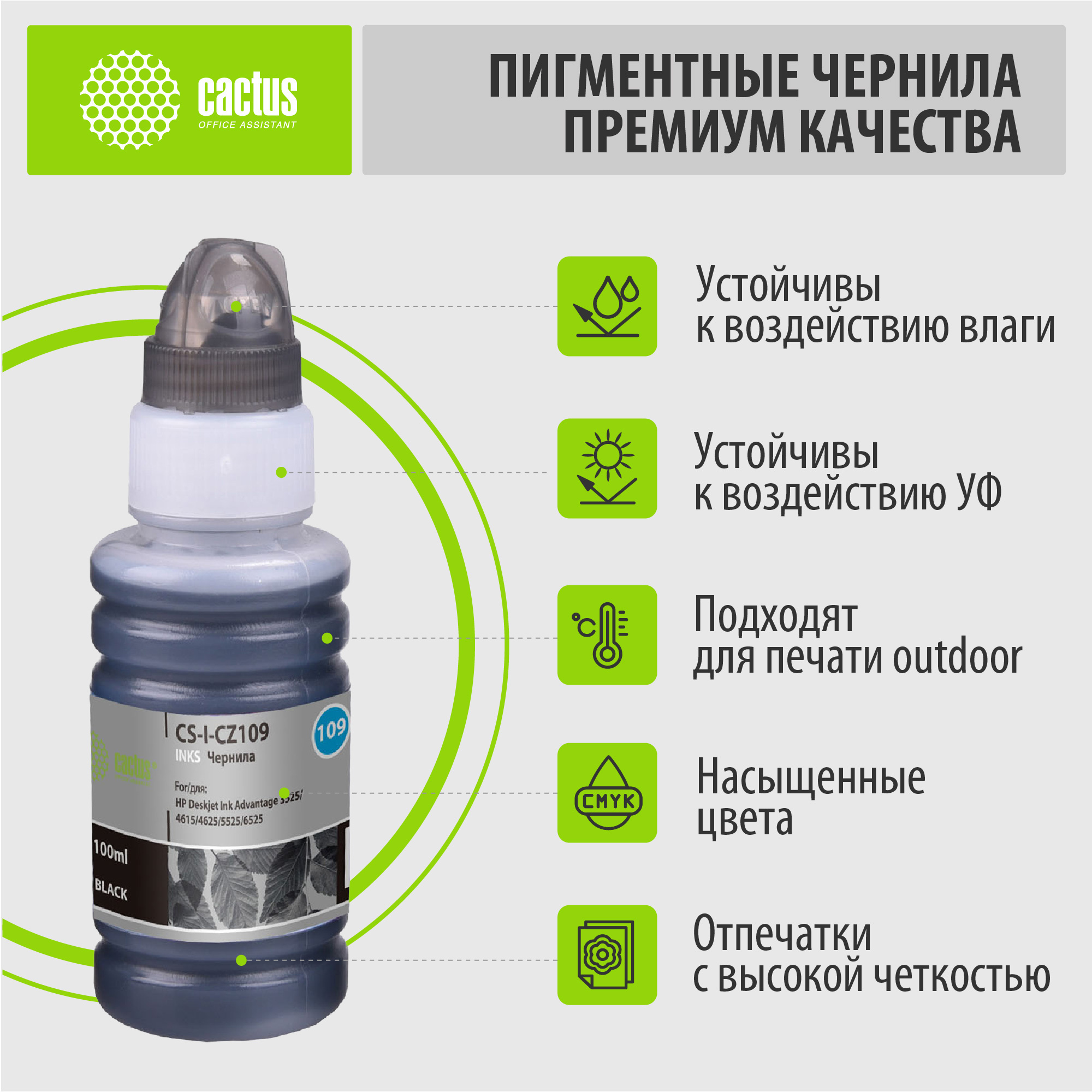 Чернила Cactus CS-I-CZ109 черный 100мл для HP DJ IA 3525/5525/4525
