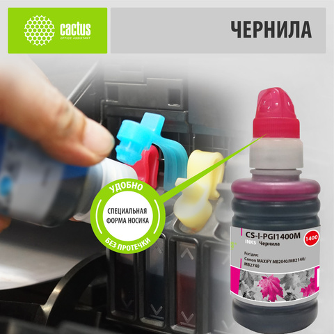 Чернила Cactus CS-I-PGI1400M Пурпурный / Magenta пигментный 100мл для Canon MAXIFY MB2040/MB2140/MB2740