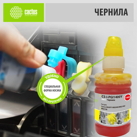 Чернила Cactus CS-I-PGI1400Y Желтый / Yellow 100мл для Canon MAXIFY MB2040/MB2140/MB2740