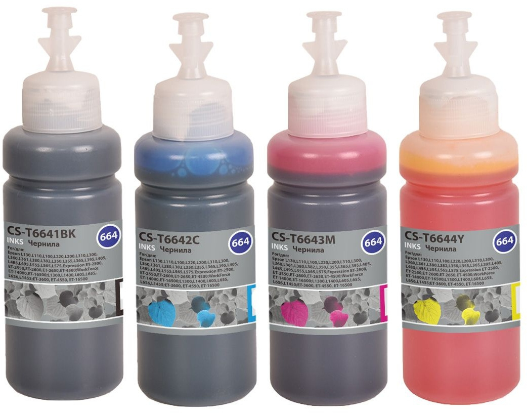 Чернила Cactus CS-T664set 664 голубой/пурпурный/желтый/черный набор 4x70мл для Epson L130, L110, L100, L220, L200, L310, L300, L360, L361, L380, L382, L350, L355, L365, L395, L405, L485, L495, L555, L565, L575, Expression ET-2500