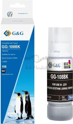 Чернила G&G GG-108BK C13T09C14A черный 70мл для Epson Ecotank L8050/L18050