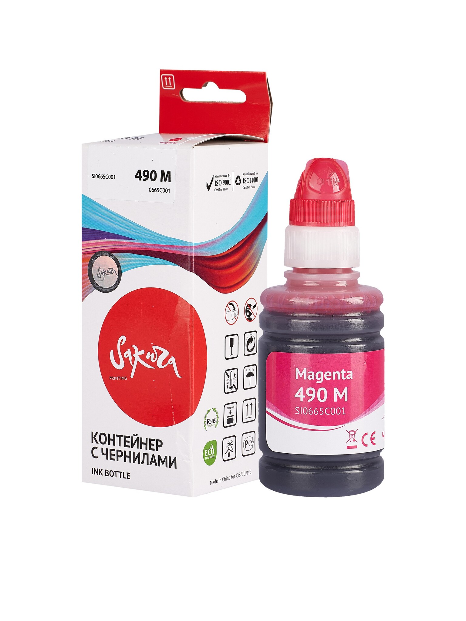 Чернила Sakura 0665C001 для Canon PIXMA G1400, G1410, G1411, G2400, G2410, G2411, G3400, G3410, G3411, G4400, G4410, G4411, пурпурный, водорастворимый тип, 100 мл., 9000 к.