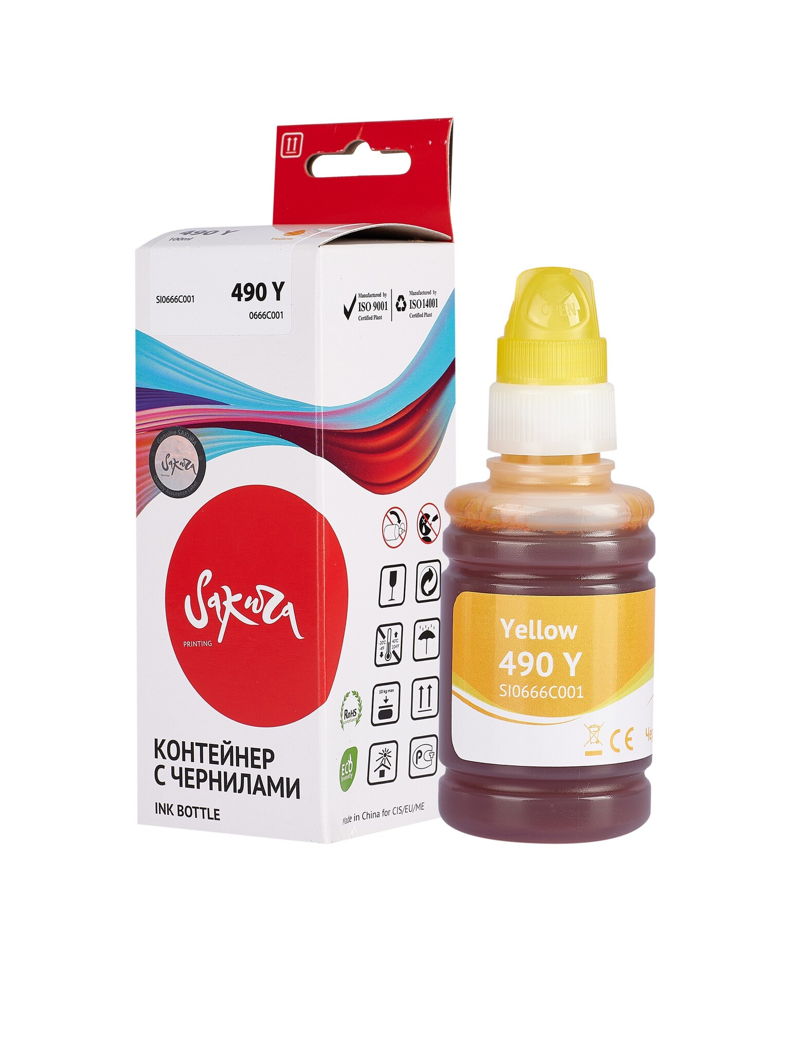 Чернила Sakura 0666C001 для Canon PIXMA G1400, G1410, G1411, G2400, G2410, G2411, G3400, G3410, G3411, G4400, G4410, G4411, желтый, водорастворимый тип, 100 мл., 9000 к.