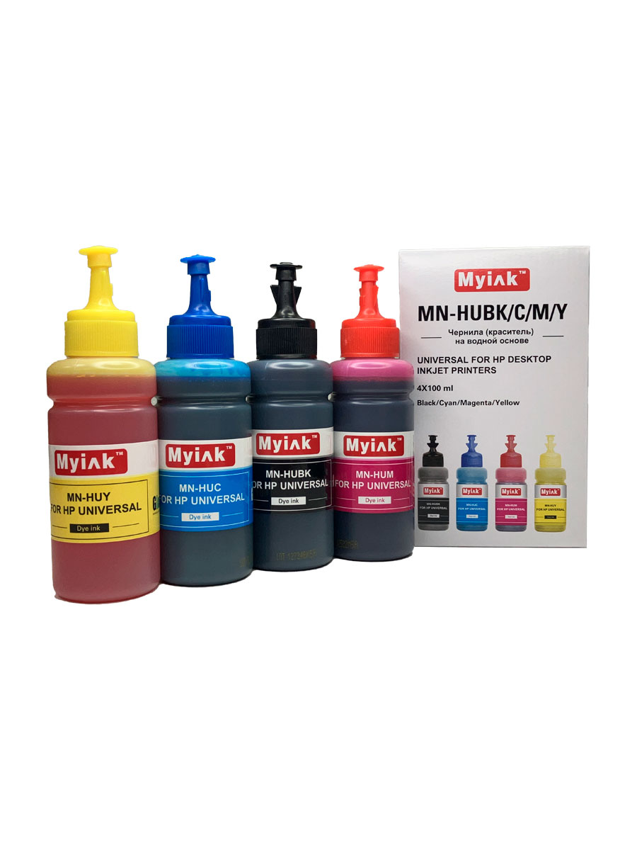 Чернила универсальные MyInk для HP водные (Dye), комплект 4 цвета по 100 мл