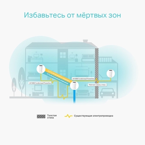 Гибридная домашняя система увеличивает покрытие до 370 м2 благодаря совместному использованию двухдиапазонного Wi-Fi и Powerline. Устраните зоны со слабым сигналом — искать стабильное соединение больше не понадобится.