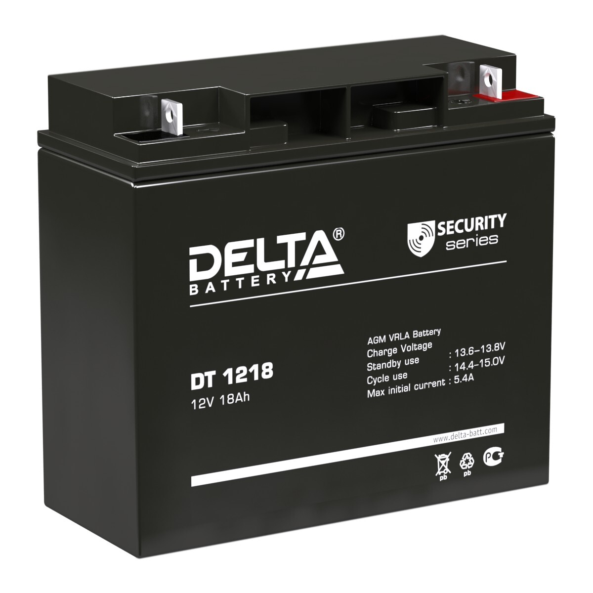 Область применения: Переносные и портативные приборы. Системы безопасности и контроля Тип батареи: свинцово-кислотный, герметичный Тип обслуживания: Необслуживаемый Напряжение, VDC: 12 Ёмкость-Ah: 18 Интерфейс: клеммы типа болт+гайка 5.5 мм Материал корпуса: пластик ABS не поддерживающий горение Цвет: черный Габариты: Длина, мм: 181 Высота, мм: 160 Глубина, мм: 77 Вес, кг: 5.2 Особенности: Технология AGM (Absorbent Glass Mat). Соответствие требованиям UL, IEC, Гост Р
