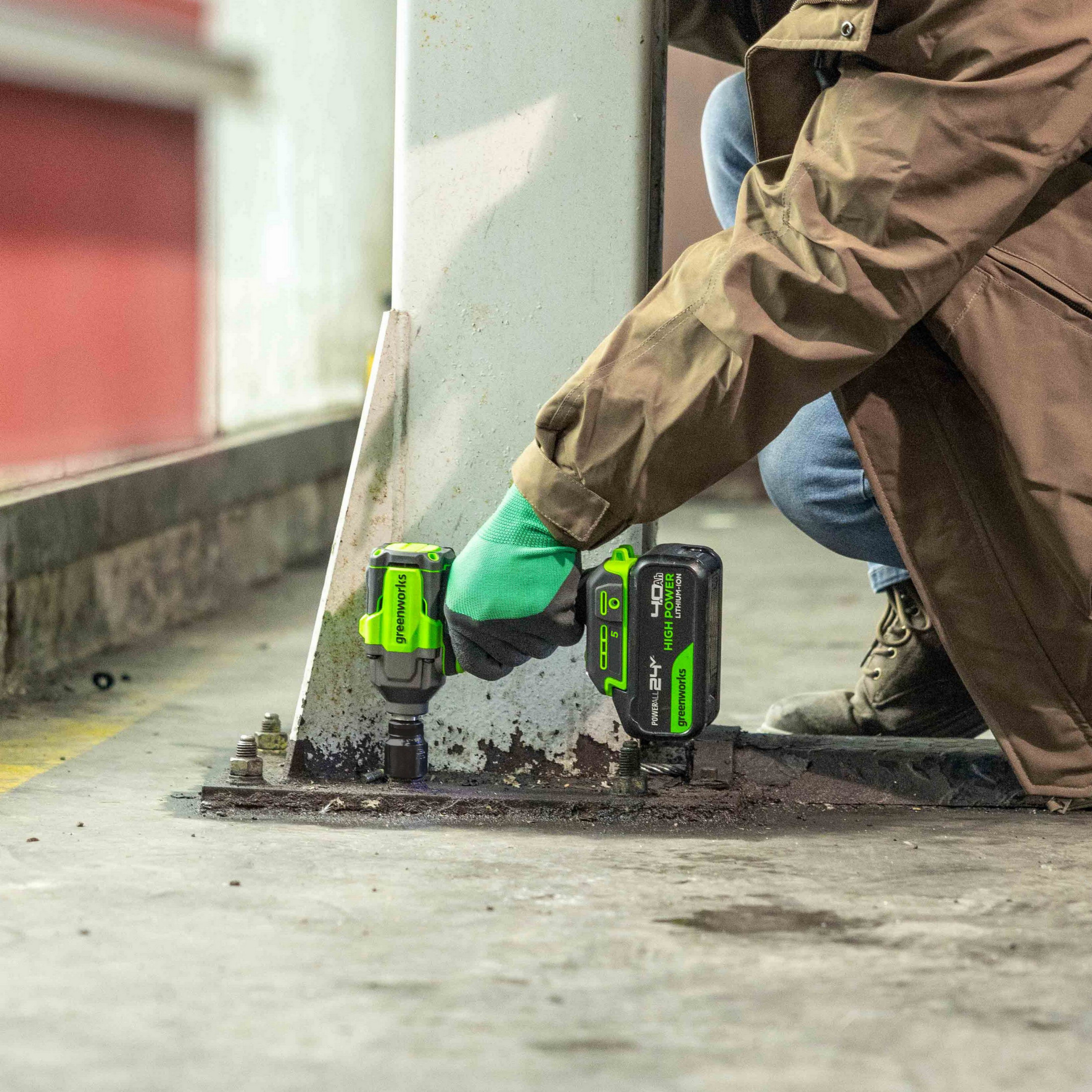 - Гайковерт ударный аккумуляторный Greenworks 24V IW5500 (арт.3805007);