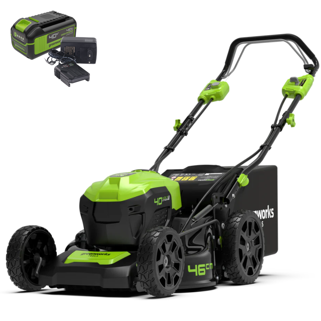 Аккумуляторная газонокосилка Greenworks 40В GD40LM46SPK4 работает на аккумуляторах серии Greenworks 40В, что упрощает работу с несколькими инструментами, сохраняя единое решение по питанию.