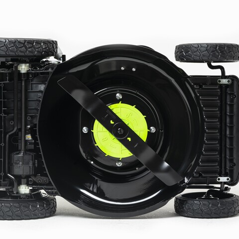 Надежная стальная дека и устойчивые колеса: Обеспечивают долговечность и устойчивость на любом типе поверхности. Стальная дека защищает газонокосилку от повреждений, а подшипники обеспечивают плавный ход.