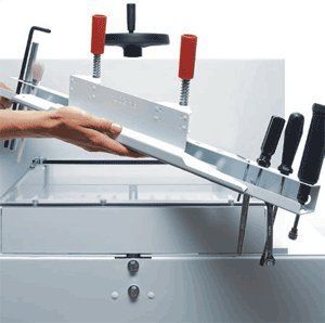 Операция реза в Ideal 4815 осуществляется электромеханическим приводом, активация которого происходит двумя руками, что минимизирует риск возникновения производственной травмы. Рабочая зона во время осуществления реза закрывается прозрачным кожухом, при открытии которого лезвие блокируется.