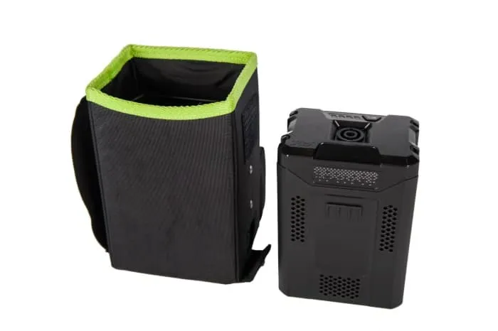 Жилет-держатель с переходником для зарядки для переноски аккумуляторов Greenworks 82V. Оснащен поясом и наплечными лямками для распределения веса, можно регулировать под особенности телосложения оператора.