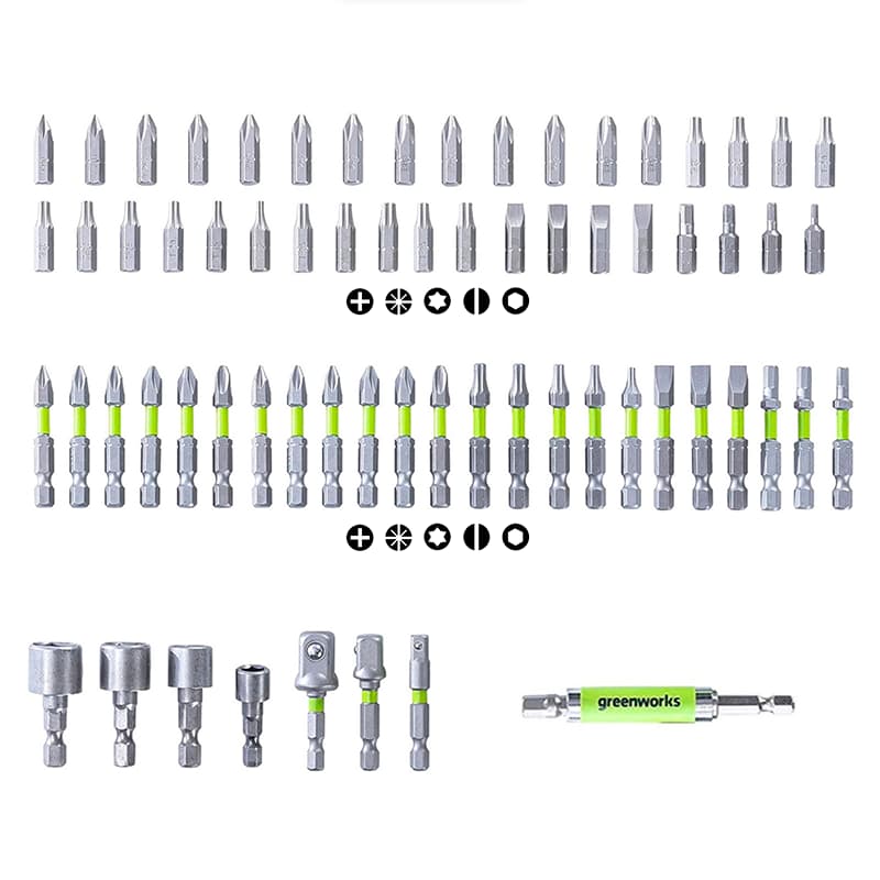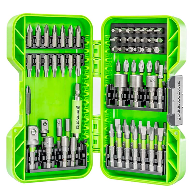 Набор бит, торцевых головок и адаптеров в кейсе Greenworks Арт. 2944407, 70 шт.