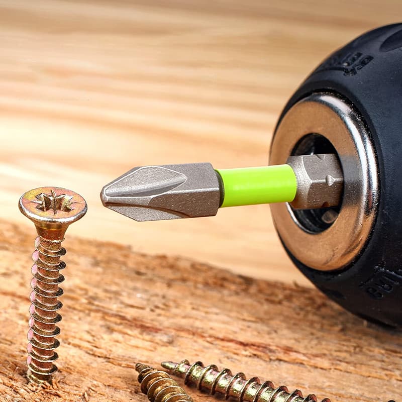 Биты изготовлены из стали S2. Биты 50 мм имеют торсионную зону для компенсации избыточного крутящего момента и сохранения рабочей зоны метиза и биты.