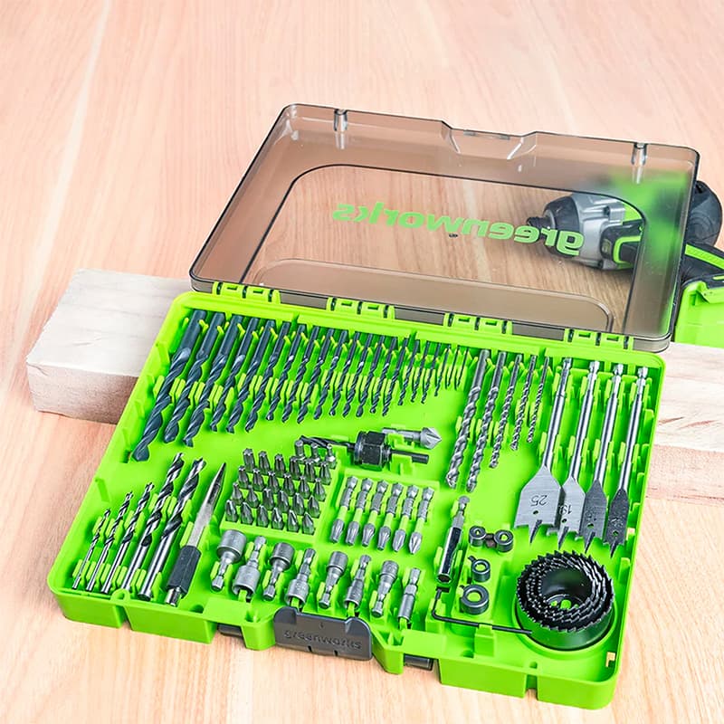 Набор сверл, бит и коронок в кейсе Greenworks Арт. 2944607, 90 предметов