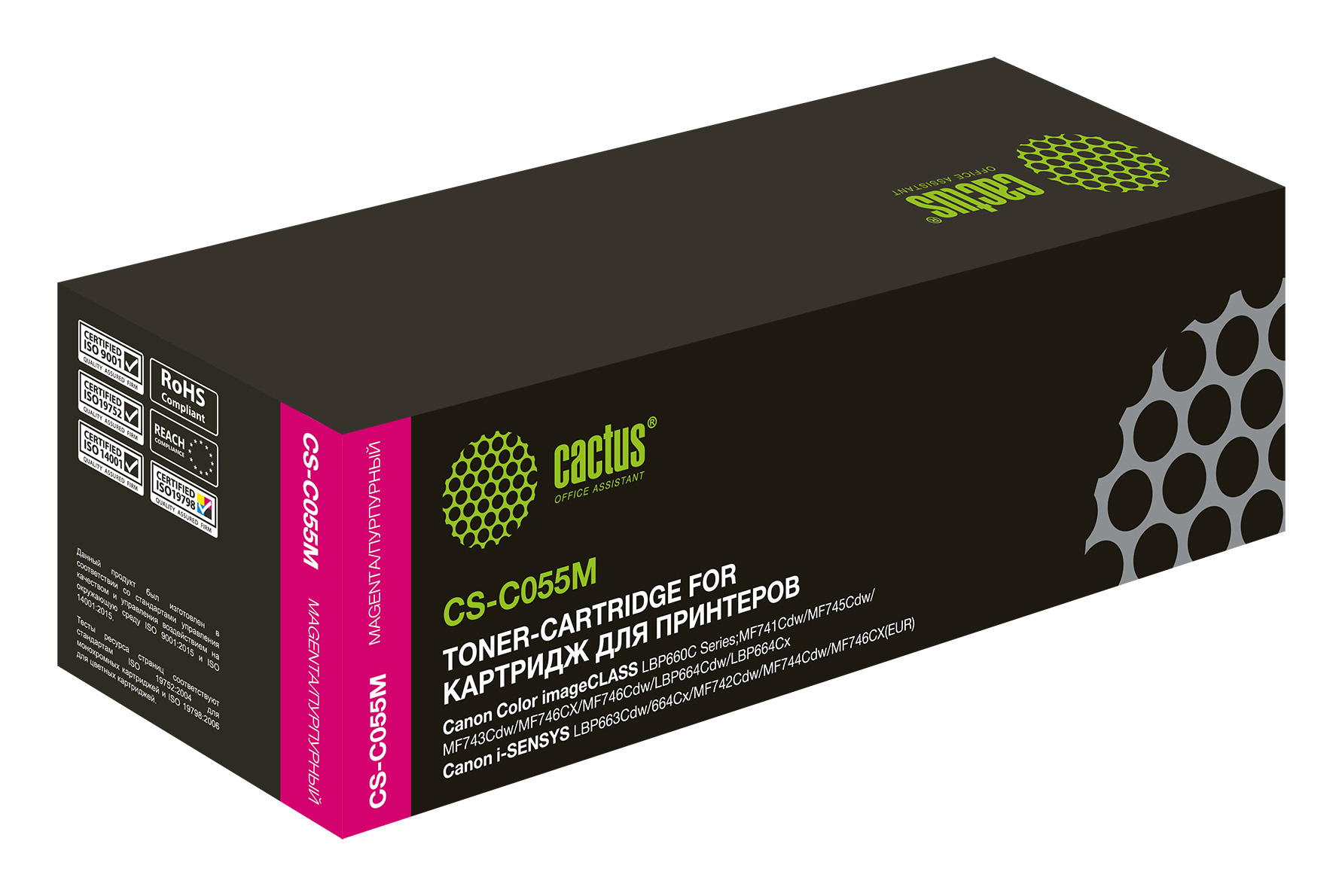 Картридж лазерный Cactus CS-C055M 055 M пурпурный (2100стр.) для Canon LBP663Cdw, LBP664Cx, MF746Cx, MF742Cdw, MF744Cdw