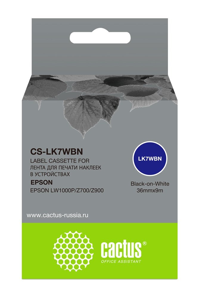Картридж ленточный Cactus CS-LK7WBN черный для Epson LW1000P, Z700, Z900