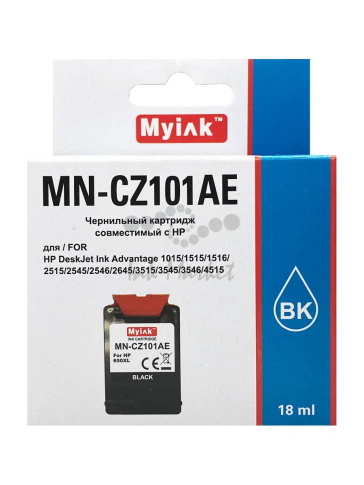 Картридж Myink 650XL CZ101AE для HP DJ Advantage 2515, 3515, 4515 Black (18ml)