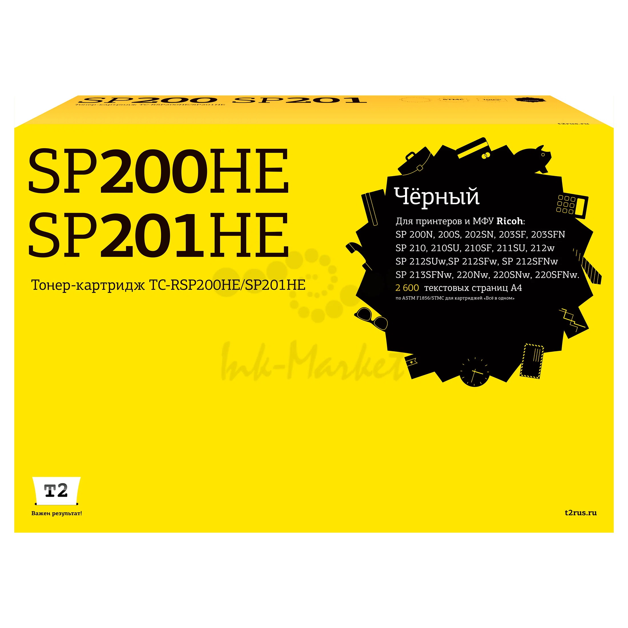 Картридж T2 TC-RSP200HE/SP201HE для Ricoh SP200N/200S, 202SN/203SF, 203SFN/210, 210SU/210SF, S211SU/212w, 212SUw/212SFw, 212SFNw/213SFNw, 220Nw/220SNw, 220SFNw (2600стр.) черный, с чипом 407262/407254