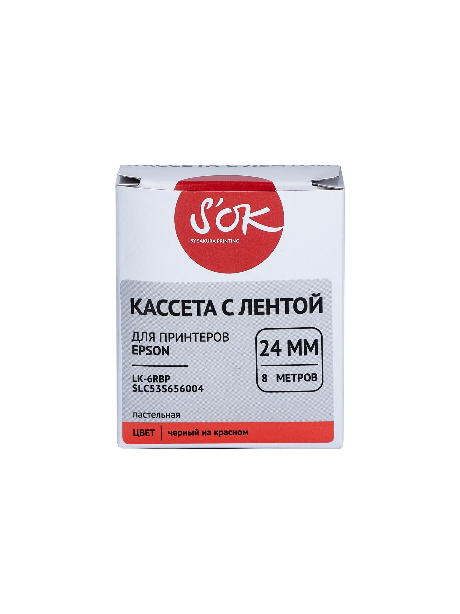 Кассета с лентой S'OK by Sakura Printing C53S656004 (LK6RBP) для Epson LW700, LW600P, LW1000P, Z700, Z800, черный на красном, 24мм, 8м, пастельная