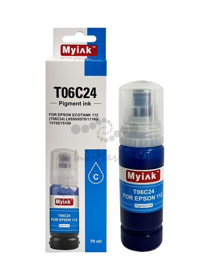 Контейнер с чернилами Myink EcoTank 112 голубой для Epson L6550, L6570, L6580, L15150, L15160 (70 ml)