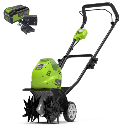Аккумуляторный Культиватор G40TLK4. Предназначен для рыхления почвы в рядках и междурядьях. Позволяет эффективно рыхлить почву, благодаря рабочей глубине в 20 см и ширине 26 см. Лёгкое управление и маневренность культиватора обеспечивают 6" колёса и удобная складная ручка. Благодаря питанию от 40V аккумулятора культиватор обеспечивает долгую автономную работу.
