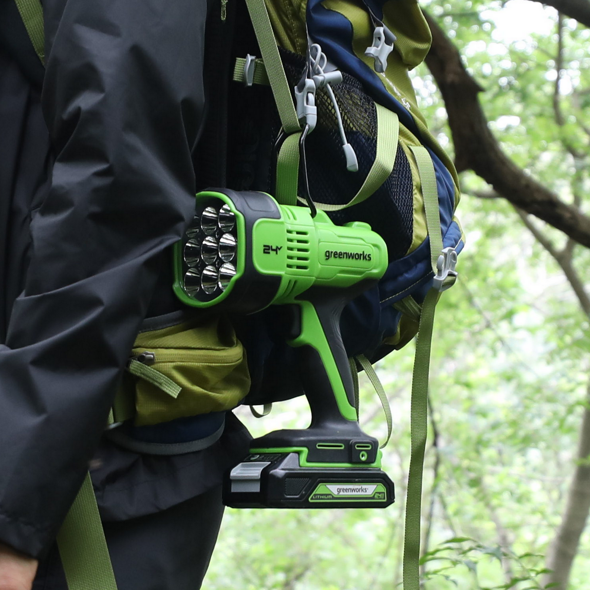 Аккумуляторный LED-прожектор Greenworks 24V G24SL работает от аккумулятора Greenworks 24В, совместимого с 70 инструментами из линейки Greenworks 24V. Это позволяет использовать один и тот же аккумулятор для разных задач, что экономит средства и упрощает эксплуатацию.