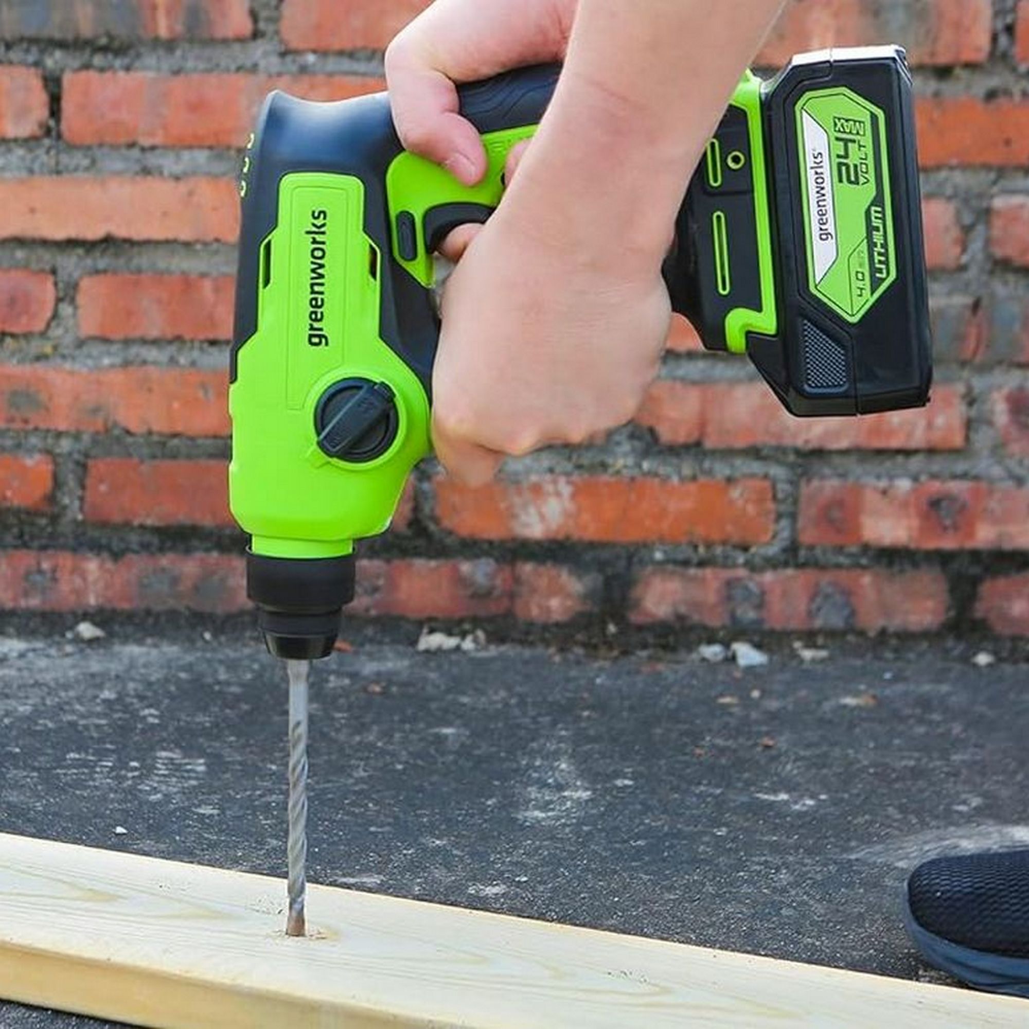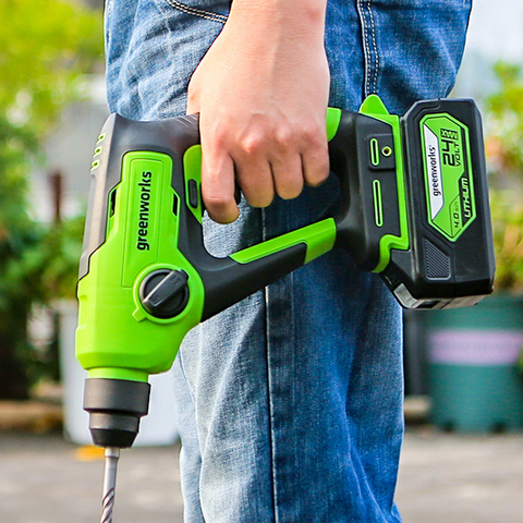 Перфоратор Greenworks 24V GD24SDS1 работает от аккумулятора Greenworks 24В, совместимого с 70 инструментами из линейки Greenworks 24V. Это позволяет использовать один и тот же аккумулятор для разных задач, что экономит средства и упрощает эксплуатацию.
