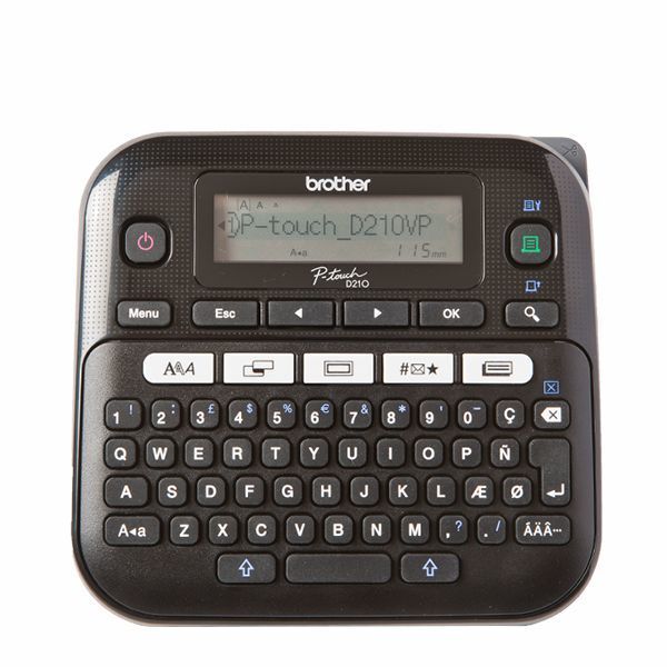 Принтер для печати наклеек Brother PT-D210VP - переносной, oт 3,5 до 12 мм, 20 мм/сек, 180 т/д, однострочный, кейс+БП, ленты TZE (PTD210VPR1)
