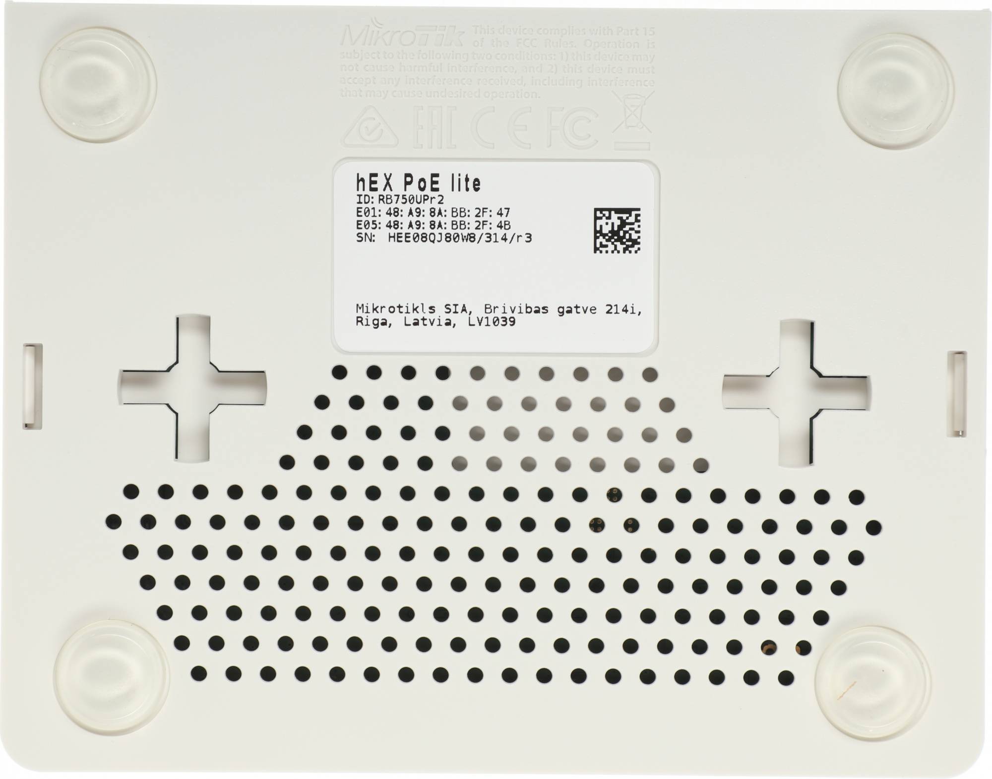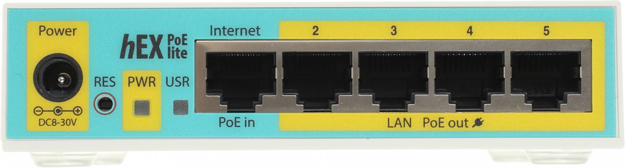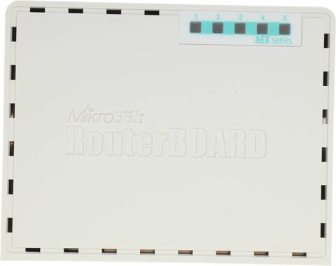 MikroTik hEX PoE lite with 650MHz CPU, 64MB RAM, 5xLAN (four with PoE out), USB, RouterOS L4, plastic case and PSU