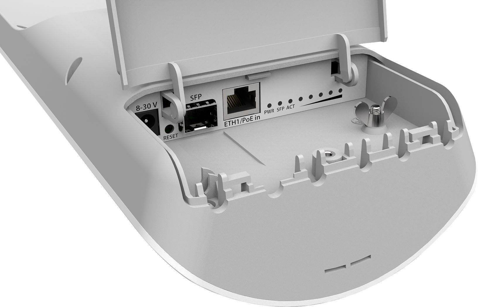 Точка доступа MikroTik mANTBox 19s with 19dBi 5GHz 120 degree sector antenna, Dual Chain 802.11ac wireless, 720MHz CPU, 128MB RAM, 1xGbit LAN, 1xSFP, PoE, PSU, mounting kit, RouterOS L4