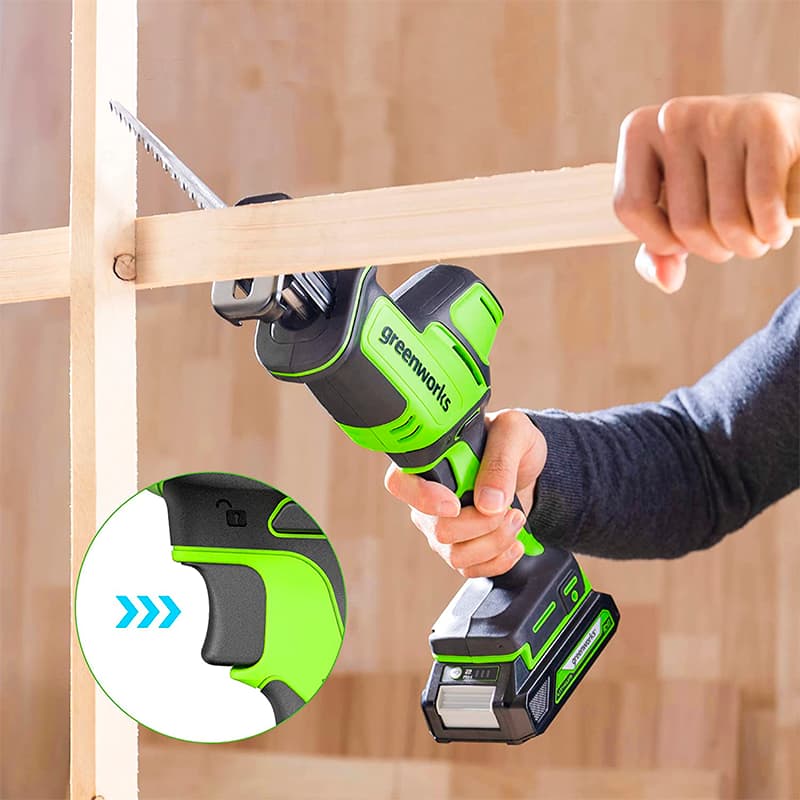 Сабельная пила Greenworks 24V GPT-CRS-25 работает от аккумулятора Greenworks 24В, совместимого с 70 инструментами из линейки Greenworks 24V. Это позволяет использовать один и тот же аккумулятор для разных задач, что экономит средства и упрощает эксплуатацию.