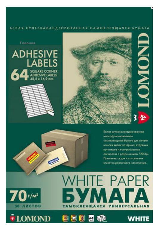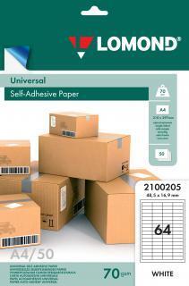 Самоклеящаяся бумага LOMOND универсальная для этикеток, A4, 64 делен. (48.5 x 16.9 мм), 70 г/м2, 50 листов.