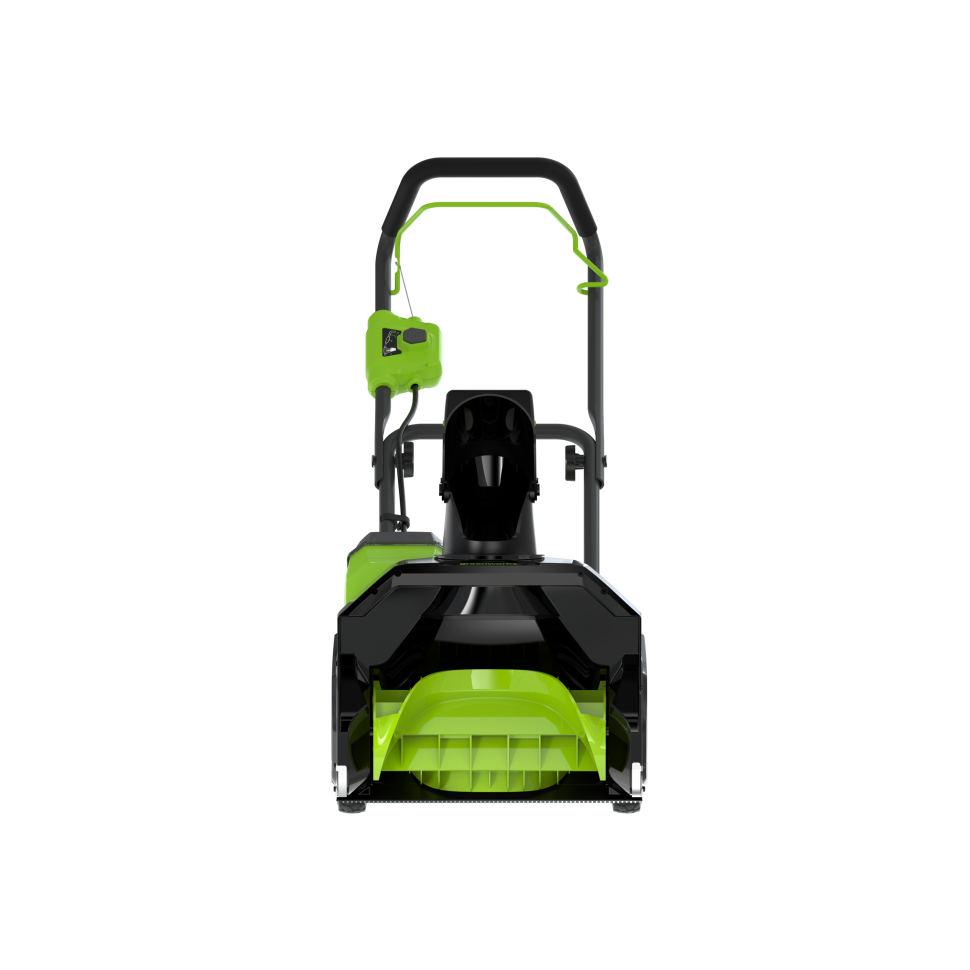 Снегоуборщик Greenworks 40V G40ST40 (арт.2603607) - компактный и лёгкий аккумуляторный снегоуборщик для уборки свежего снега перед домом, гаражом, на парковке, садовых дорожках, верандах и патио. Благодаря ширине захвата 40 см и прочному пластиковому шнеку устройство эффективно очищает поверхность до основания, не повреждая декоративное покрытие.