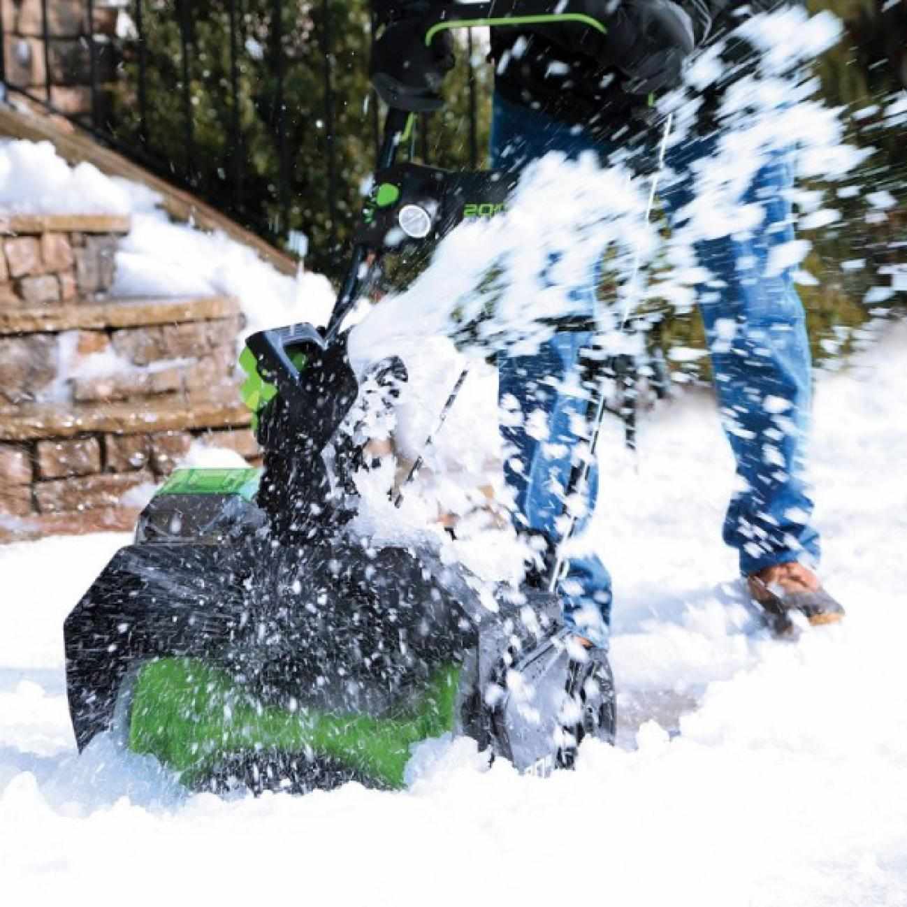Снегоуборщик Greenworks 40V GD40SB работает на аккумуляторах серии Greenworks 40В, что обеспечивает полную совместимость с другими инструментами этой линейки.