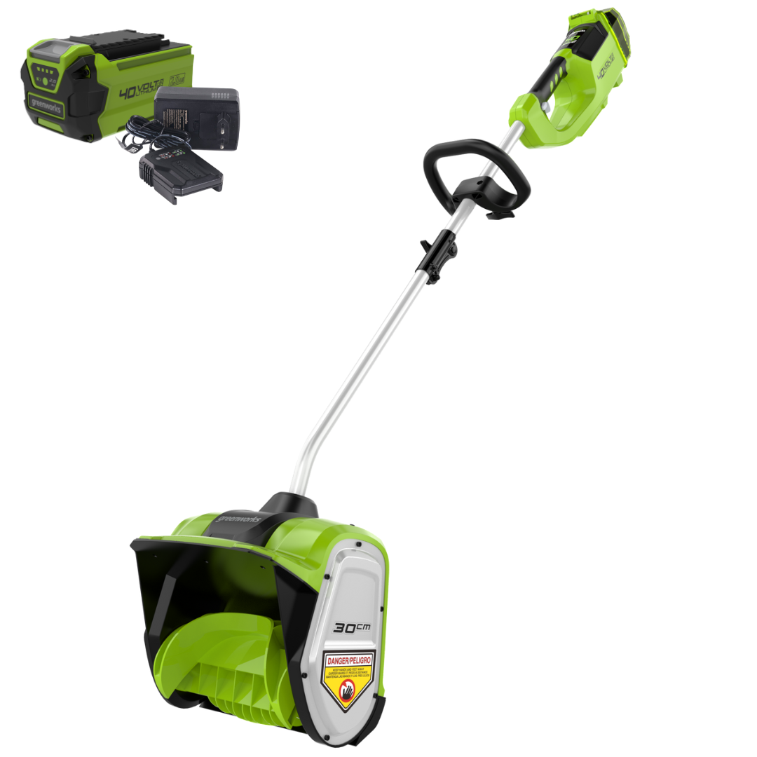 Снегоуборщик аккумуляторный Greenworks 40V GD40SSK2 (арт.2600807UA) — компактная и удобная модель, идеально подходящая для уборки снега на приусадебных участках, вокруг гаражей и домов. Этот снегоуборщик входит в линейку устройств Greenworks 40В, что делает его отличным дополнением к вашей коллекции аккумуляторных инструментов. Новинка имеет компактный размер и предназначена для облегчения уборки территорий от снега.