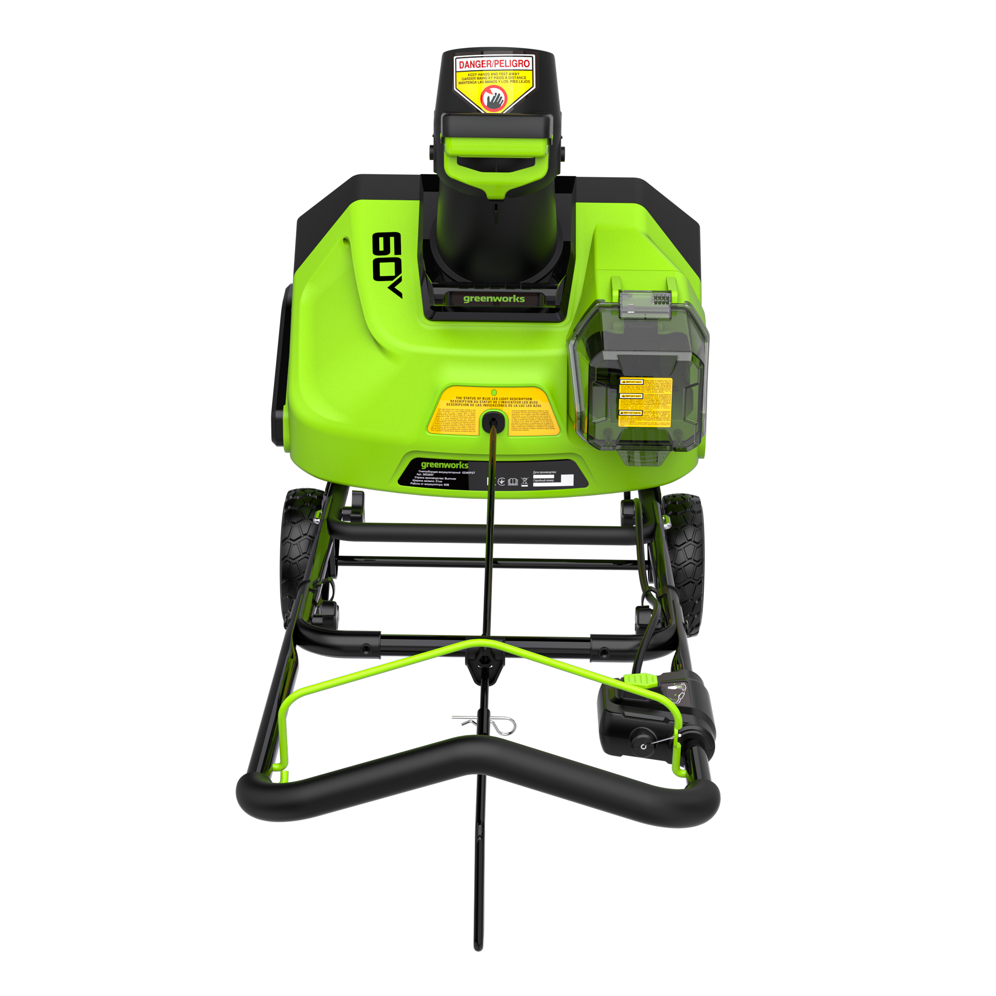 Снегоуборщик аккумуляторный Greenworks 60V GD60PST (арт.2602907) из мощной полупрофессиональной линейки 60 V предназначен для очистки от снега небольших и средних по площади территорий, например, около дома или гаража, а также пешеходных дорожек.