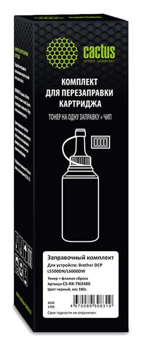 Тонер Cactus CS-RK-TN3480 черный флакон 180гр. (в компл.:флажок) для принтера Brother DCP L5500DN/L6600DW