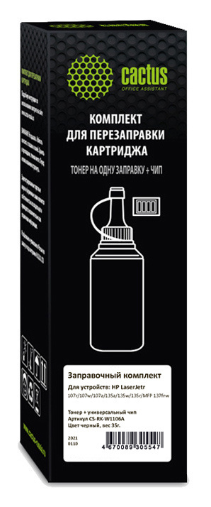 Тонер Cactus CS-RK-W1106A черный флакон 35гр. (в компл.:чип) для принтера HP LaserJet 107/135/MFP 137