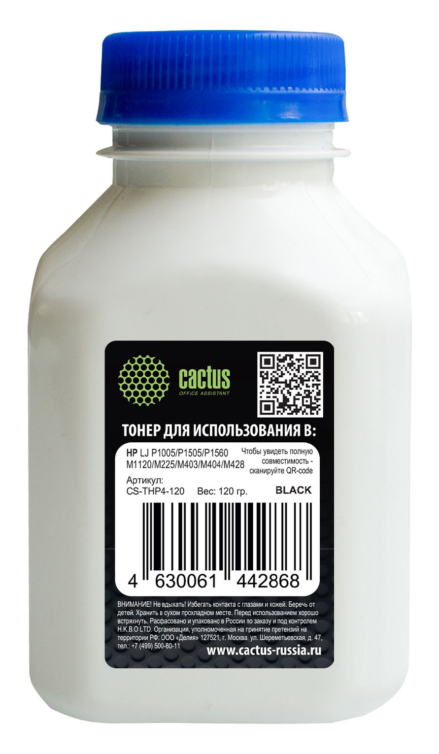 Тонер Cactus CS-THP4-120 черный флакон 120гр. для принтера CB435A/CB436A/CE278A/CE285A/CF283A/CF244A/CF283X, принтеров HP LJ P1005/P1006/P1100/P1102/P1505/P1566/P1606/M1132/M1212/M1214/M1217/M1522/M1536, LJ Pro M15/M28/M125/M127/M201/M225