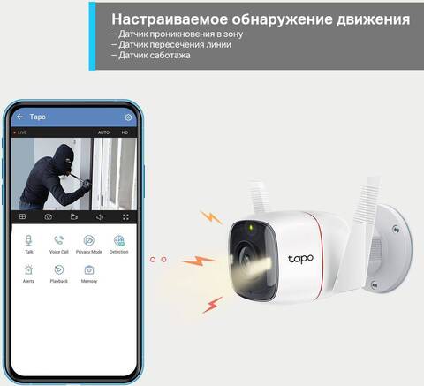В отличие от чёрно-белого изображения обычных камер изображение Tapo C320WS цветное благодаря объективу с высоким разрешением, через который проходит больше света.