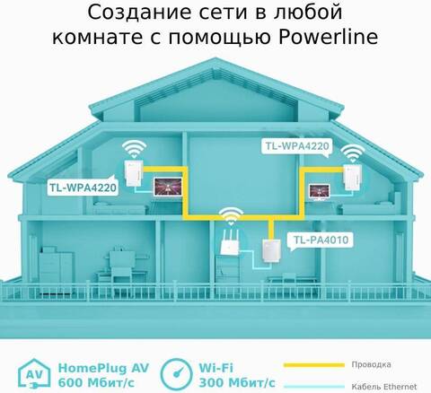 AV600 N300 Wi-Fi Powerline адаптер TL-WPA4220 KIT