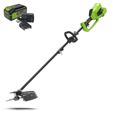 Аккумуляторный триммер GreenWorks GD40STK2X. Это полупрофессиональная модель для скашивания травы и мягкой поросли, подравнивания травы в труднодоступных для газонокосилки местах. Данная модель оснащена бесщёточным электродвигателем DigiPro. Двигатель DigiPro эффективнее и надежнее обычного щеточного. Cопоставим по мощности с двигателем внутреннего сгорания. При этом абсолютно экологичен. Не требует дополнительного обслуживания. Прост в эксплуатации. Имеет пониженный уровень вибраций и шума.