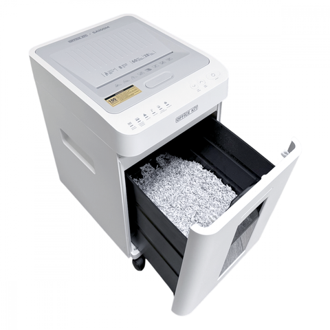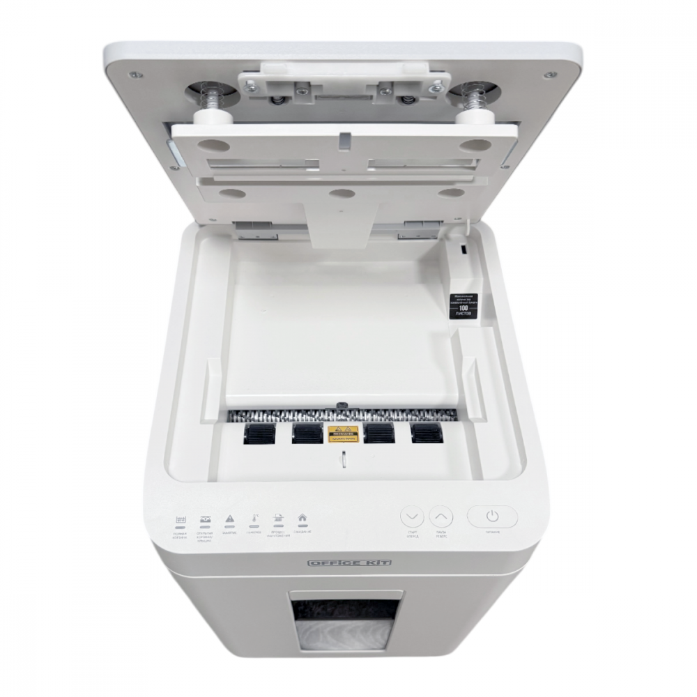 Лаконичный уничтожитель для офисного использования с функцией автоподачи на 100 листов и высоким уровнем секретности.