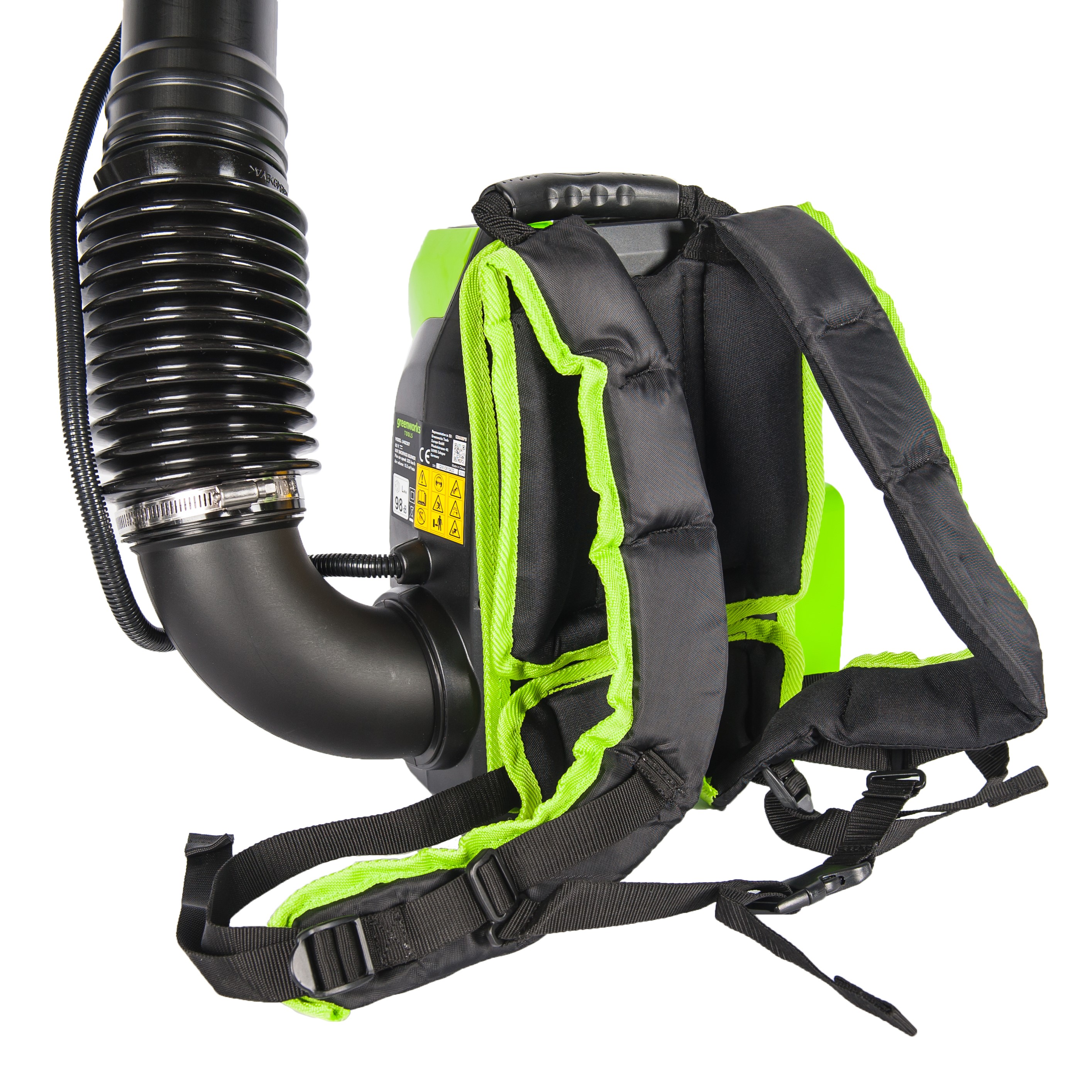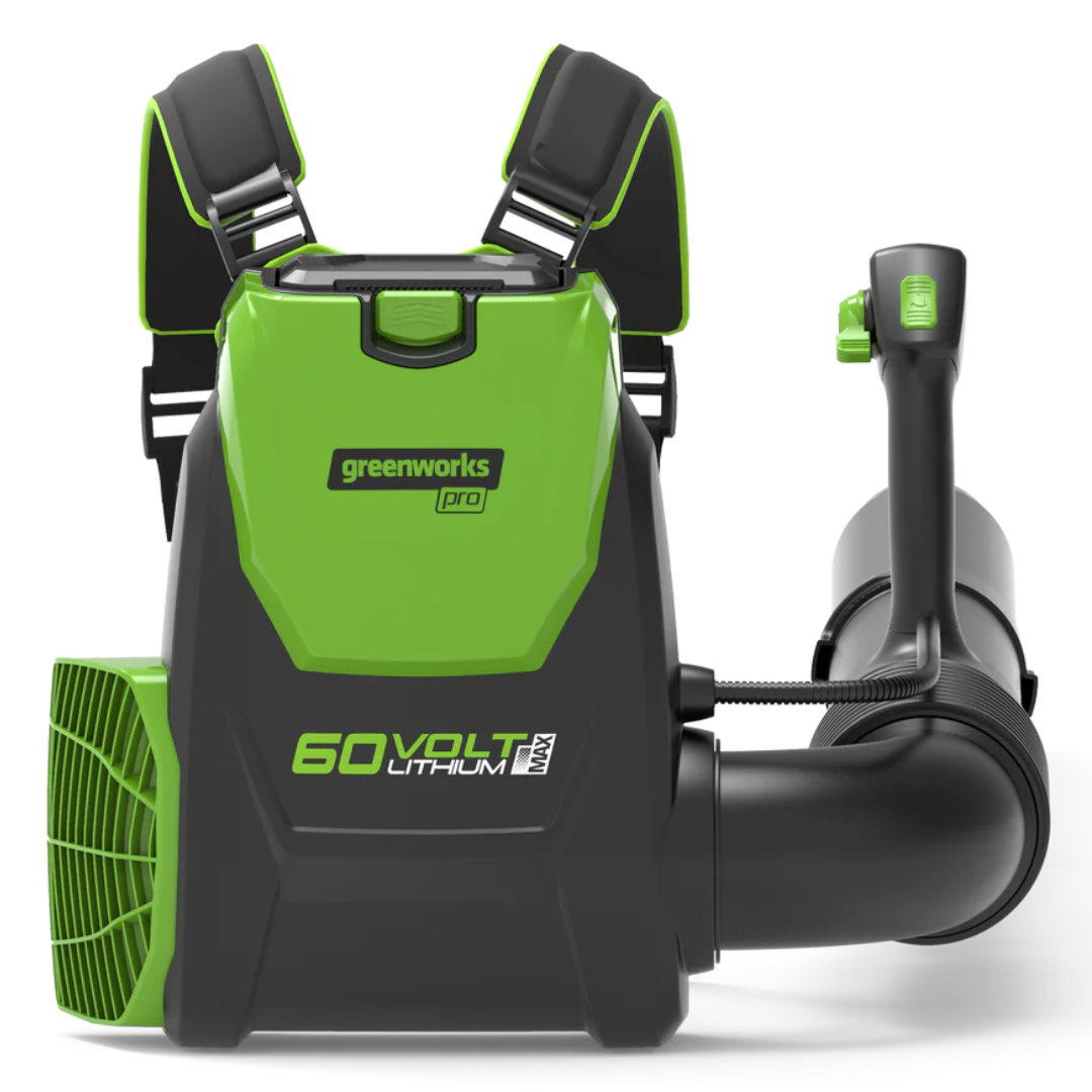 Воздуходувка ранцевая аккумуляторная Greenworks из линейки устройств 60 вольт (модель GD60BPB) — новинка 2017 года и отличный выбор для продолжительных работ по уборке территорий от опавших листьев, пыли и прочего мусора.