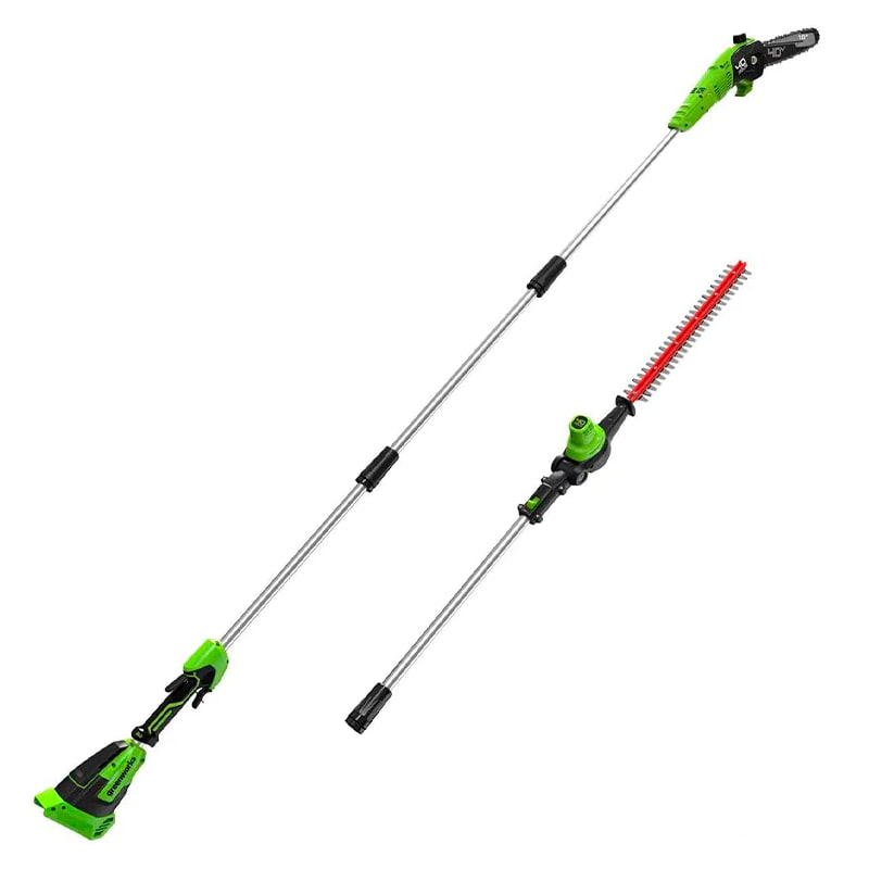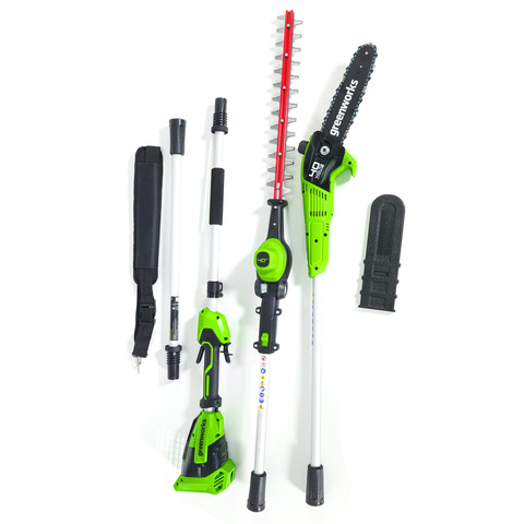 Аккумуляторный высоторез/кусторез 2в1 Greenworks 40В G40PSH (арт. 1303907) — это многофункциональный аккумуляторный инструмент для ухода за садом, совмещающий в себе функции высотореза и кустореза. Это идеальное решение для обрезки ветвей, формирования крон деревьев, ухода за посадками изгородей и кустарников. Высоторез с легкостью справится с обрезкой ветвей и сучьев на высоте до 3,5-х метров, благодаря 3-х секционной штанге длиной 1,7 м. Пильная шина имеет длину 25 см.